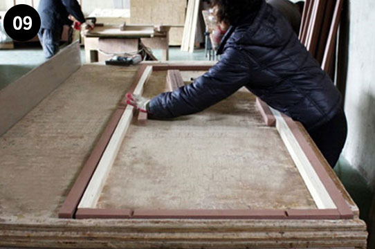 ÇÁ·¹ÀÓ ³»ºÎ¿¡ Á¢ÂøÁ¦¿Í Çã´ÏÄÄÀ» ÃæÁøÇÑ ÈÄ ´ëÇüÇÁ·¹½º¿¡ ³Ö°í ¾ÐÂøÇÕ´Ï´Ù.